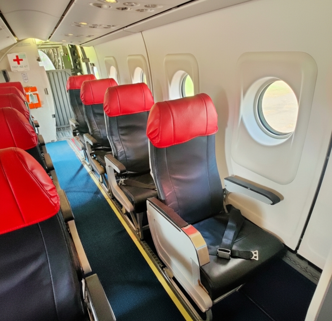 “Fly in comfort with NC212-200 service. Enjoy full amenities”